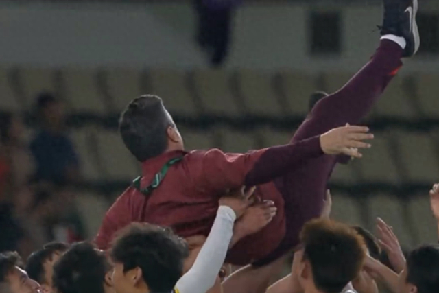 以3比0的比分完胜越南之后,U23国足首次晋级U23亚洲杯决赛。比赛结束之后,主教练安东尼奥被球员们高高抛起。